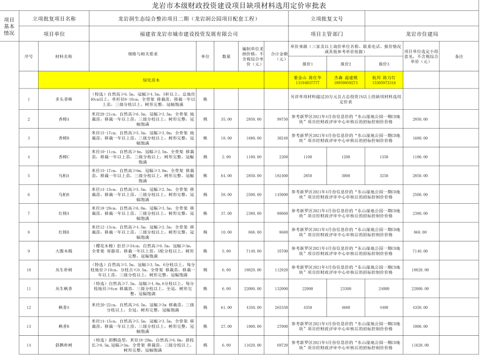龍巖洞生態(tài)綜合整治二期(龍巖洞公園項(xiàng)目配套工程)缺項(xiàng)材料公示